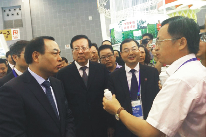 • 成都市農(nóng)委總農(nóng)藝師姚光貴向成都市委唐書記介紹可以喝的太抗生物農(nóng)藥(2016年創(chuàng)交會)