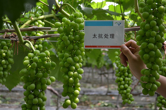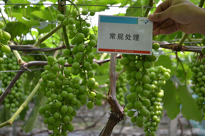 莊園牧歌陳總對太抗系列產(chǎn)品的效果給予了充分肯定:第一、與進(jìn)口化學(xué)殺菌劑效果相當(dāng);第二、性價比高,藥效持效期長;第三、植株長勢健壯、葉片濃綠厚實;第四、促進(jìn)葡萄生長,提前著色,可以使葡萄提早上市。陳總說“我們國人自己生產(chǎn)的太抗生物農(nóng)藥既然有這么好的效果,性價比高,又安全,我肯定支持國產(chǎn)噻”,這是對我們太抗最大的肯定與鼓舞!