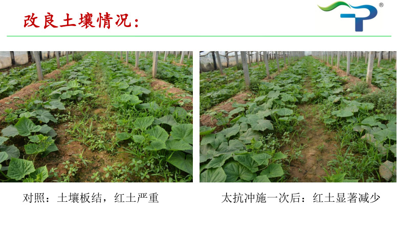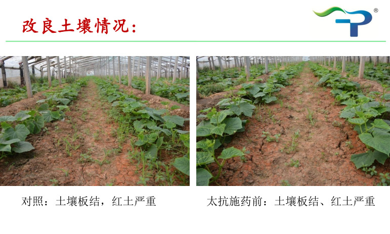 去年,太抗“枯芽春+木每靈”組合在山東區(qū)域的辣椒根腐病、豇豆莖基腐等病害上表現(xiàn)突出,得到種植戶與零售商的一致好評,給予其“枯木逢春”組合的美譽。今年,小抗的同事們結(jié)合公司土壤改良產(chǎn)品——土蘇,在山東青州某土壤板結(jié)嚴重的大棚黃瓜上,再次驗證了“枯木逢春”組合的神奇!